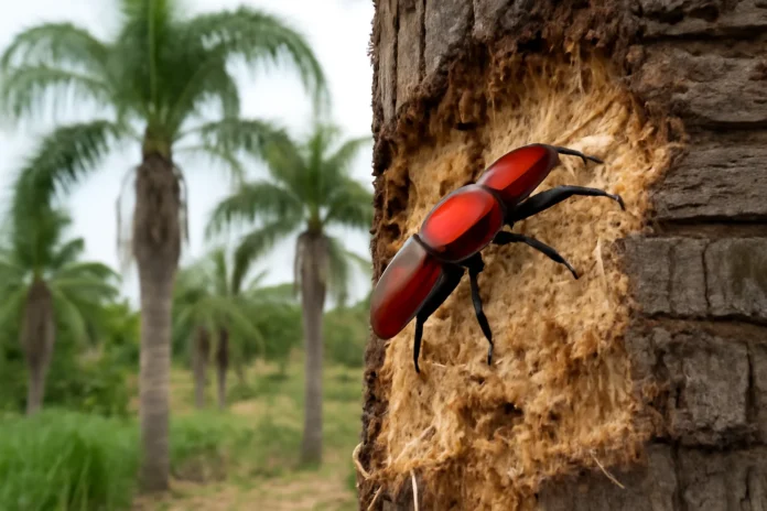 Ameaça do bicudo-vermelho ao Brasil: praga que destrói palmeiras nativas e ornamentais, risco a produtores e ao mercado paisagista