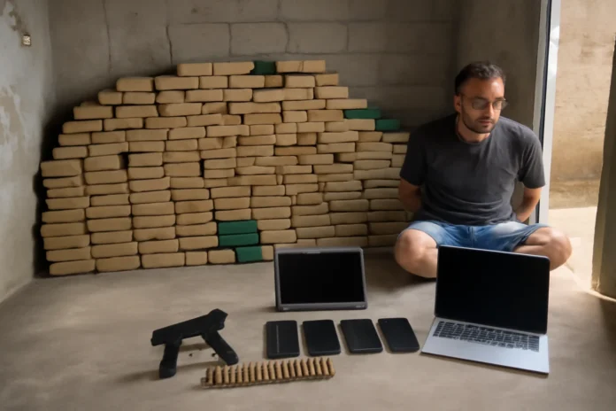 Também foram apreendidos um revólver calibre .38, doze munições intactas, três balanças de precisão, embalagens, fitas para preparo da droga, um caderno com anotações e equipamentos eletrônicos, como celular e pen-drives.