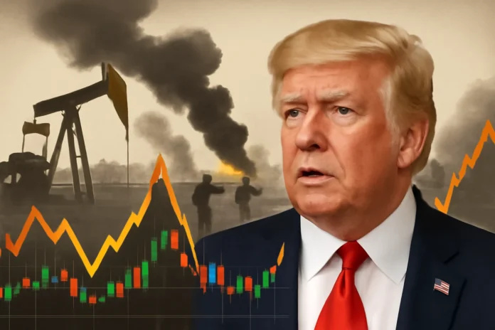 As menções do presidente dos EUA a negociações, cessar‑fogo e ataques pontuais afetam o preço do petróleo imediatamente, criando picos e quedas por conta das expectativas