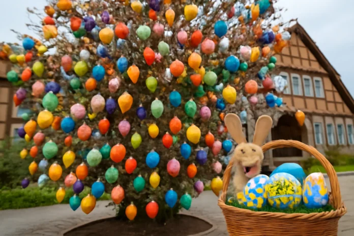 A árvore de Páscoa, conhecida como Osterbaum, segue uma tradição trazida da Alemanha e é montada todo ano para a Osterfest, que começou em fevereiro e termina neste domingo, dia 5.