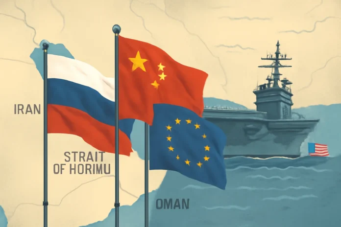 Rússia, China e União Europeia reforçam apelo pela liberdade de navegação enquanto Estados Unidos bloqueiam navios ligados ao Irã no Estreito de Ormuz